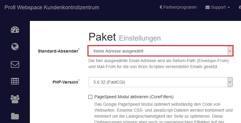 Unsere Mailserver nehmen von Scripten lediglich gültige Absenderadressen an. Dies kann über den Parameter "-f" in der PHP mail()-Funktion oder im Kundenkontrollzentrum eingestellt werden.